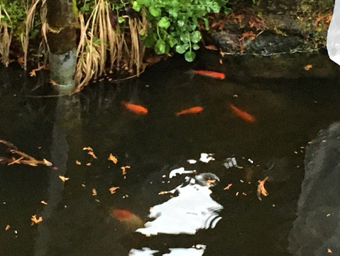 わずかな金魚しか住んでいなかった池に仲間が増え金魚たちの元気に泳いでいる様子が心に安らぎを与えてくれています。