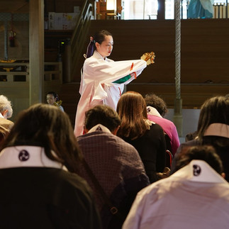 4月22日 旧暦3月3日に合わせ恒例の桃の節句祭、春の講社大祭を斎行致しました。風の冷たさを感じる中にも快晴に恵まれ、遠近より50名程の講員御崇敬者の皆様が参拝下さり、御神殿に桃の花を添え飾り、御食御酒、菱餅、鯛、乾物、野菜、果物、塩水、桃酒の御神饌を始め講員名簿台帳を供し、子孫繁栄、健康長寿、福寿円満、災難即滅等々のお祈りを申し上げました。浪速神楽「剣舞」を奉奏、玉串奉奠の後、般若心経御真言を皆様で唱え、桃酒を拝戴致し春の花々咲きほこり、新緑の天河での一日をお過ごし下さいました。