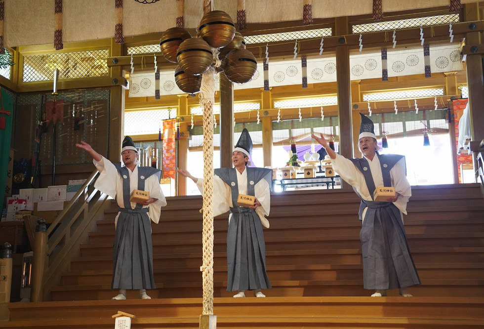 節分祭では、御尊家皆々様の諸厄難を除き、家内円満にして、家運の隆昌、諸業繁昌、交通安全、入学祈願、健康祈願等、諸々御祈祷を申し上げ、併せて護摩祓いを斎行致します。天河社社家は役行者と供に祀られております前鬼、後鬼の子孫と言い伝えられており、節分祭宵の晩に『鬼の宿』として、鬼(神)を迎えます。夜更け、一番座敷に布団をひき、にぎりめし、梅干しを供え、縁側には澄みきった真水を手桶に張り、一晩そのままにしておきます。そうすると節分祭当日早朝、手桶の水を見ると、鬼が手を洗ったのか、足を洗ったのか底に砂が沈んでおり、鬼が泊まられたという証を賜る事ではじめて節分祭が執り行われます。よって、鬼は大いなる御宝をもち、全ての意識を越えて物事を正しく見るという古来からの信仰から「神」として崇め奉られ、神事儀礼においても、「福は内」「鬼は内」と唱えながら福豆を撒きます。
