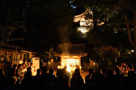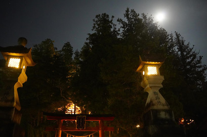 祭典後、斎庭に御神水を汲み上げたタライを供し、煌々と輝く満月の光のもと地護摩を奉修、参詣者に供した御神水とお団子を拝戴致し共々に名月を喜びお祝い申し上げました。